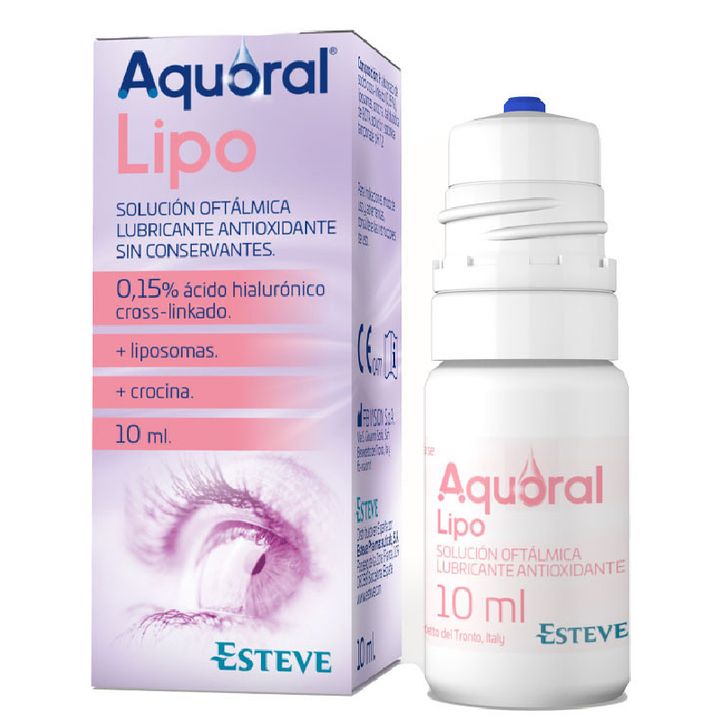 Aquoral Lipo es una solución oftálmica lubricante y antioxidante sin conservantes a base de sal sódica de ácido hialurónico cross-linkado, liposomas y crocina. El ácido hialurónico cross-linkado es una forma reticulada del ácido hialurónico para aumentar la viscoelasticidad y la estabilidad de la molécula, garantizando una mejor hidratación y un mayor tiempo de permanencia sobre la superficie ocular.